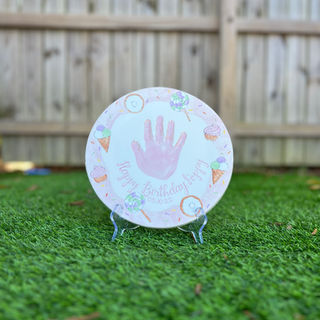 Make birthday memories extra sweet with our Happy Birthday Plate! Featuring your little one's hand/or foot impression and a cheerful birthday design, it's the perfect way to celebrate their big day and remember just how little they once were.